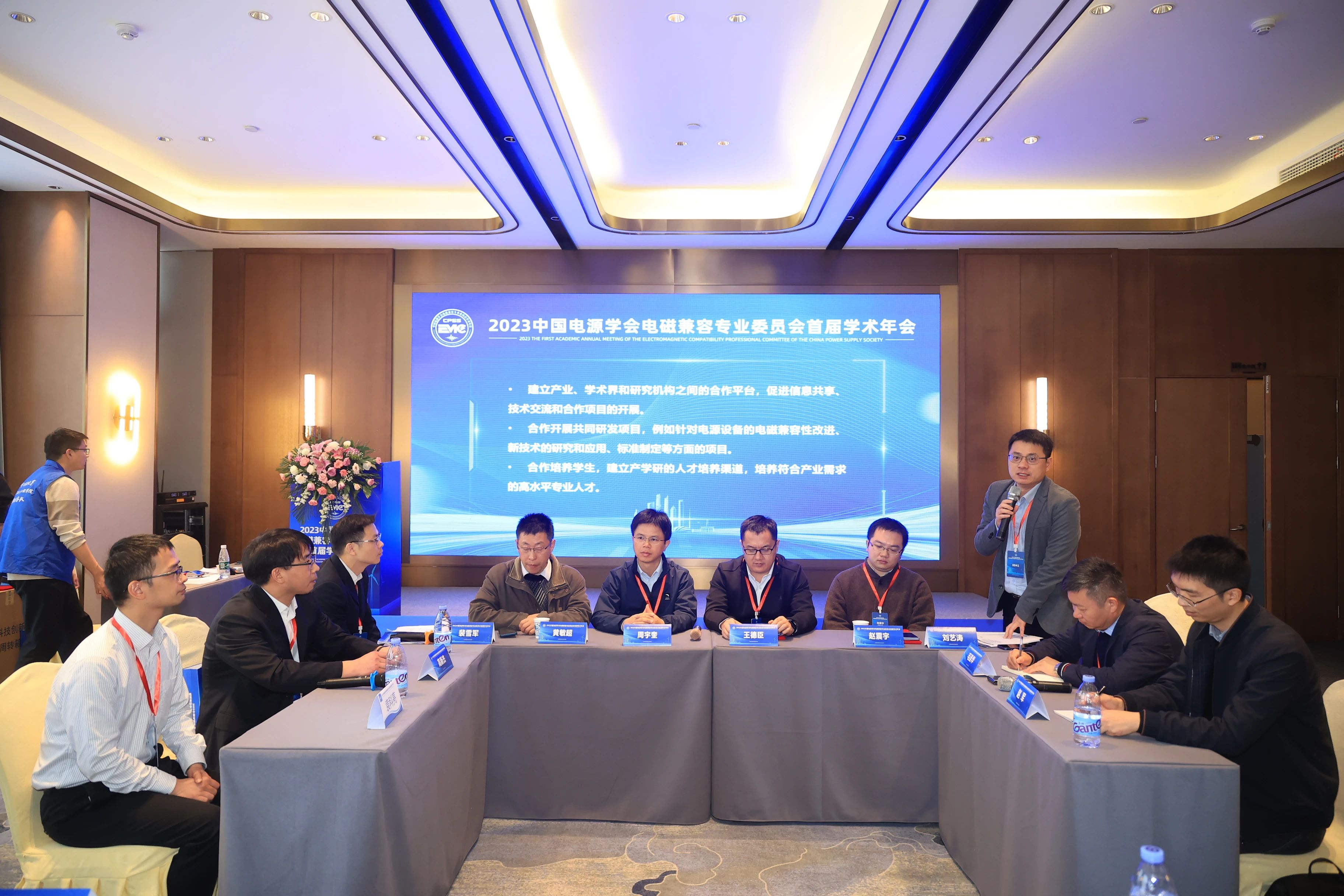 工业报告环节由陈文洁教授和陈恒林副教授主持,邀请了华为技术有限公司高级工程师王德臣分享《电源产品演进趋势与EMC设计面临技术挑战》、比亚迪汽车工业有限公司高级工程师周宇奎分享《新能源汽车高压系统的EMC突出问题与挑战》、中车株洲电力机车研究所有限公司高级工程师袁科亮分享《轨道交通电磁兼容研究现状及未来发展挑战》、敏业信息科技(上海)有限公司总经理黄敏超分享《开关电源EMI滤波器设计,仿真和验证》、南洋理工大学研究员赵震宇分享《三相共模扼流圈的高精度宽频带阻抗测量》、南京容向测试设备有限公司正高级工程师沈学其分享《适应汽车电动化和智能化趋势的电磁兼容检测技术》、博科电测(苏州)科技有限公司总经理宋博分享《多场景下装备电磁加固技术的工程设计要点与试验方案》、中电科思仪科技股份有限公司北京分公司EMC技术带头人高新杰分享《新能源汽车研发过程中遇到的一些EMI问题》。报告结束后的工业论坛环节,各位企业领导、专家围绕电源电磁兼容领域的产业问题、需求和发展方向展开了讨论与分享。