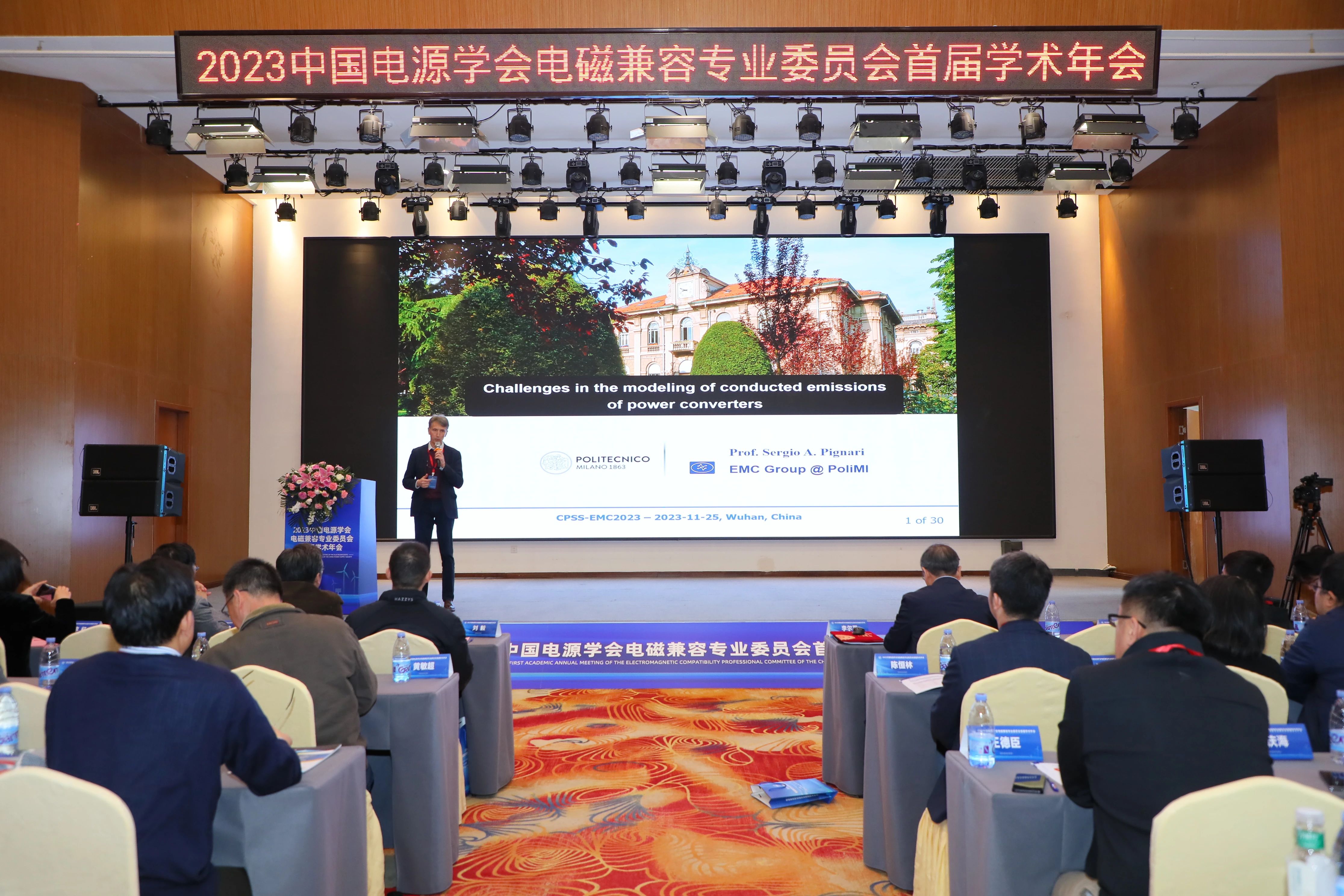 2023年11月24日至26日,由中国电源学会电磁兼容专业委员会主办、华中科技大学和武汉羿变电气有限公司联合承办的2023中国电源学会电磁兼容专业委员会首届学术年会在武汉市顺利召开。来自国内外电磁兼容领域知名学者、企业专家以及高校师生等200余位嘉宾参加了会议。