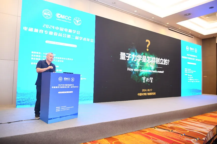 8月17日上午,大会特邀报告由华南理工大学张波教授和浙江大学陈恒林教授主持。中国科学院外籍院士王中林教授,中国科学院物理研究所曹则贤研究员,IEEE Fellow、宁波德图科技有限公司范峻教授,新加坡南洋理工大学张柏乐教授,分别作了题为《非匀速运动物体系统的动生麦克斯韦方程组理论》、《量子力学是如何创立的》、《射频干扰的基本原理、仿真建模与消减》、《Topological Electromagnetic Waveguiding》的主旨报告。